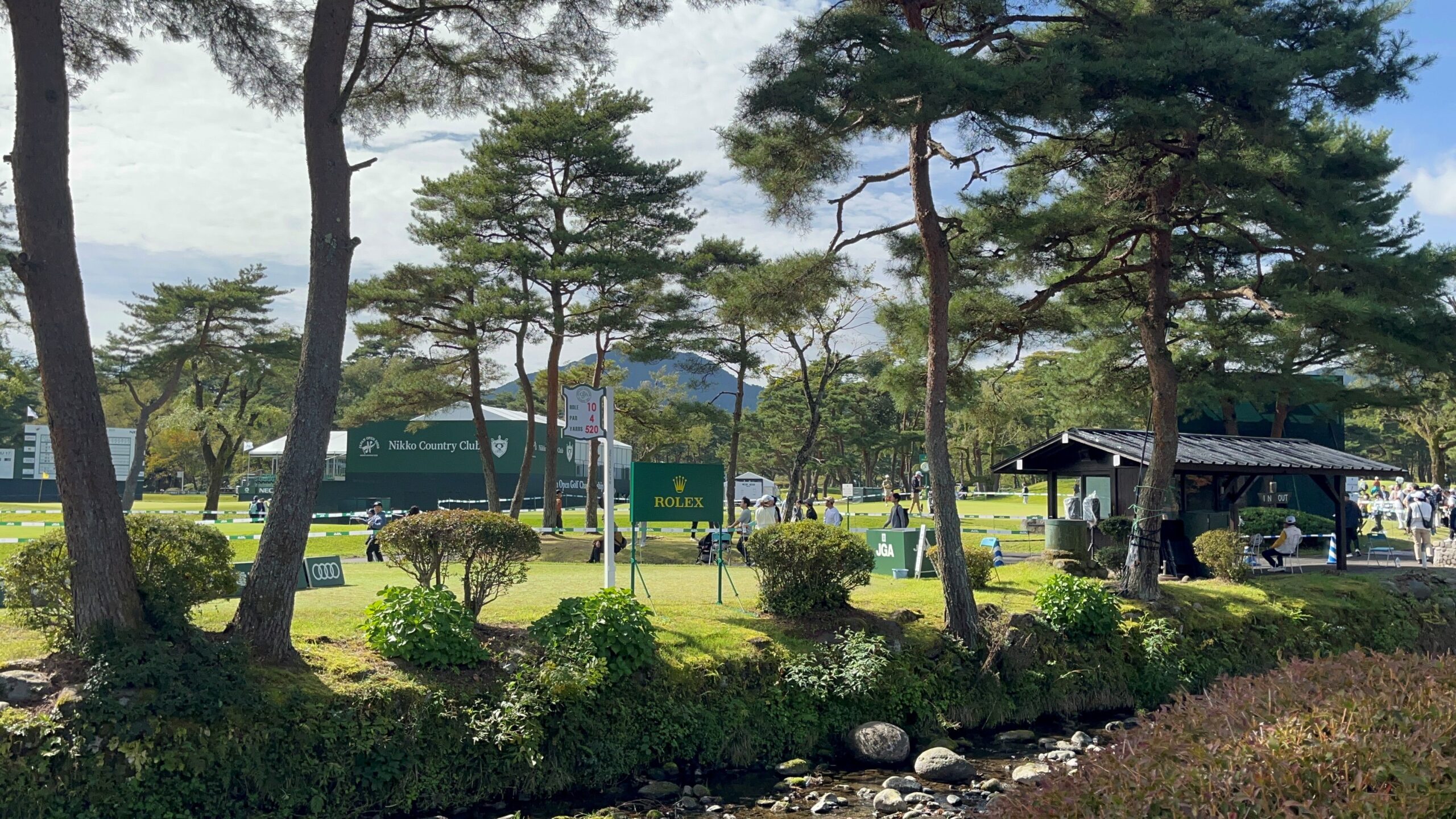 会場の日光カンツリー倶楽部に到着してまず驚いたのはROLEXの時計が置いてあったこと。アメリカのPGAツアーの会場であればよく見かけますが、日本国内のゴルフトーナメント会場で見たのは初めてでした。少し調べたところ、今年からROLEXが「JGAオフィシャルタイムピース」として関与するようになったとのこと。これがあるだけでビッグトーナメント感が出て、私は楽しくなってしまいます。