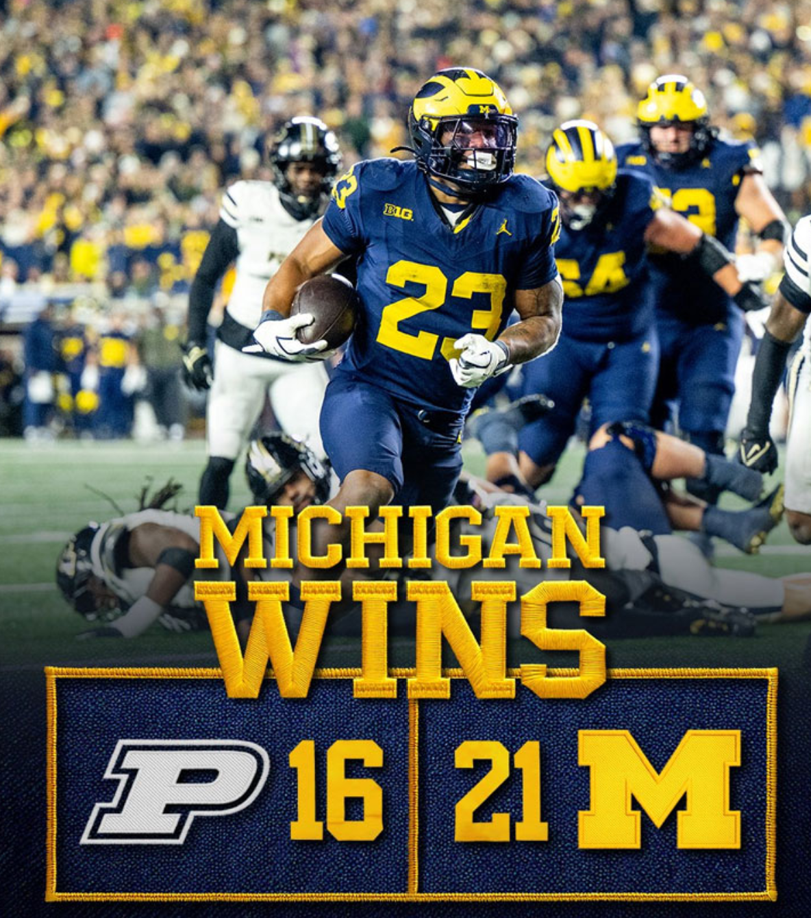 ミシガン大学とパデュー大学の試合は寒い夜に開催するという取り決めでもあるのでしょうか。2年前の2023年シーズンでも、アナーバーが本格的に寒くなり始めた11月初旬の夜にパデュー大学戦がありましたが、今シーズンも同様に。しかも今回は試合内容も寒い感じに…。